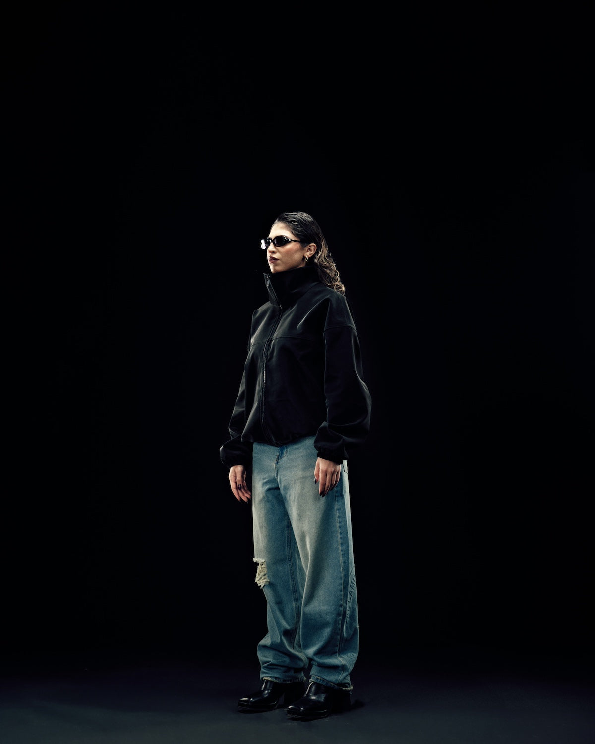 Black Leather Suede Embossed Jacket